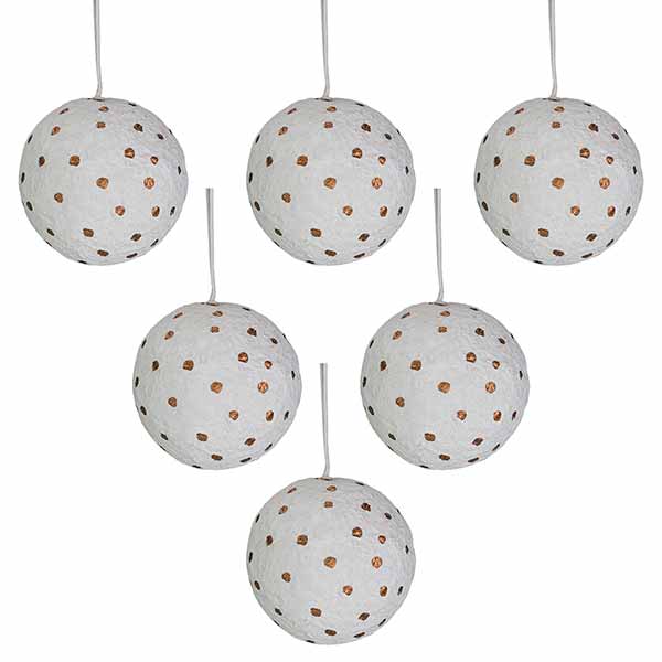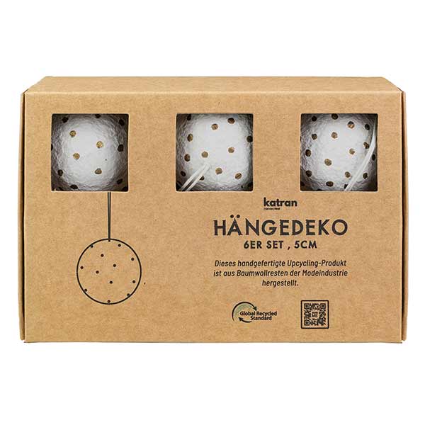 Mit viel Detailliebe handbemalte, dekorative Anhänger im 6er Set. Das Besondere: Baumwollreste, die als Abfall in der Textilherstellung anfallen, werden zu einer Art Pappmaché, genannt Katran, gepresst. So entsteht ein einzigartiges Upcyclingprodukt.