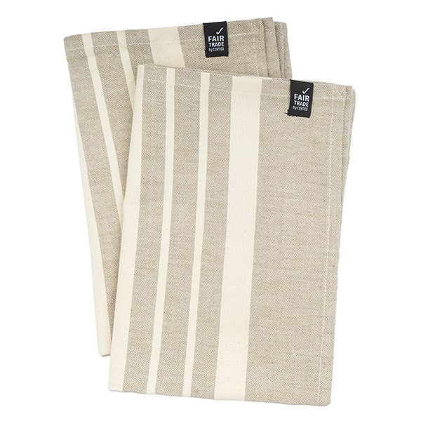 Dieses Geschirrtuch wird auf handbetriebenen Webstühlen hergestellt. Es wurde in einer kleinen Weberei im Norden Indiens, von erwachsenen Mitgliedern einer Gemeinschaft körperlich beeinträchtigter Kunsthandwerker und deren Familien handgewebt.