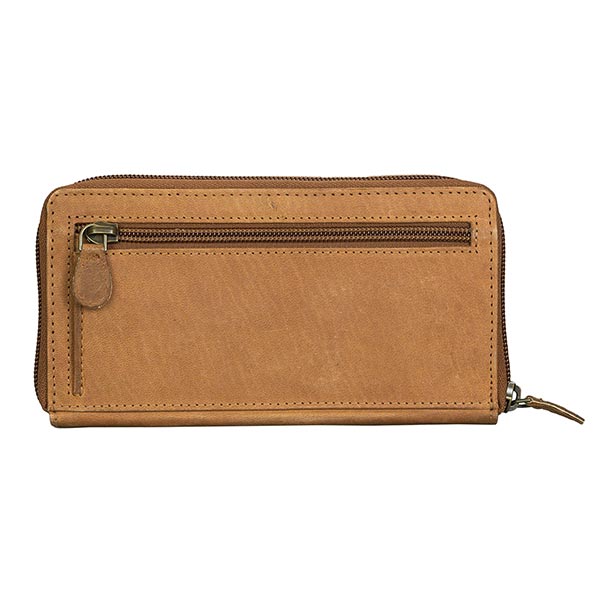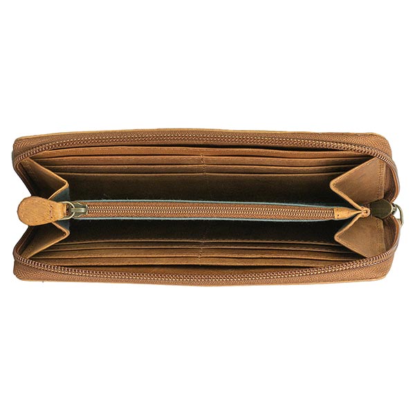 Innen: 2 Abteile mit jeweils 2 Scheinfächern und jeweils 6 Kartenschlitzen, ein weiteres Abteil mit 6 Kartenschlitzen. 1 Innenfach mit Reißverschluss.