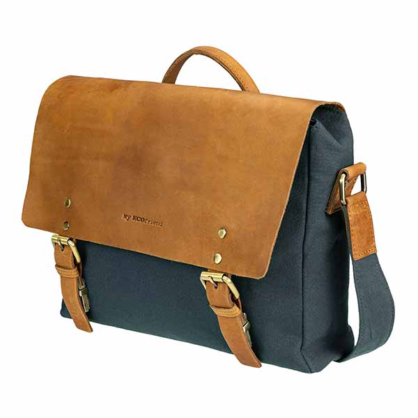 Material: vegetabil gegerbtes Ziegenleder (Ecoleder), Canvas aus Biobaumwolle