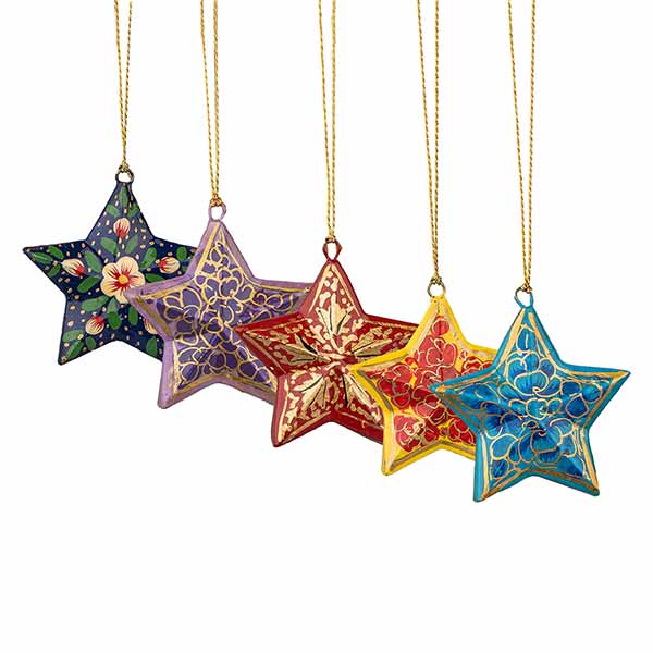 Für einen Hauch von 1001 Nacht im heimischen Wohnzimmer. Die Sterne aus Pappmaché sind handbemalt in bunten Farben und vielfältigen Blumenmustern. Sie werden vom kleinen Familienbetrieb Jalaluddin in der Region Kaschmir in Nordindien hergestellt. Toll für den Weihnachtsbaum, aber auch eine zauberhafte Deko für den Rest vom Jahr, zum Beispiel im Fenster.