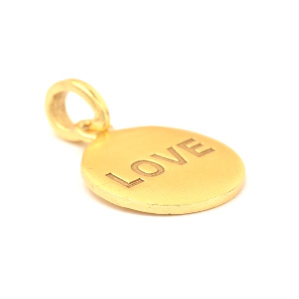Wunderschöner Plättchen Anhänger mit Gravur "LOVE". Allein getragen oder kombiniert mit einem unserer anderen Kettenanhängern ein absoluter Hingucker. Werde kreativ und stelle Dir Dein ganz persönliches Schmuckstück zusammen! Die Schmuckstücke aus vergoldetem Messing werden in der Werkstatt Creative Designs in Jaipur, Indien handgefertigt.