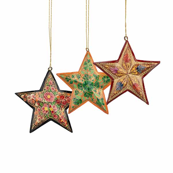 Für einen Hauch von 1001 Nacht im heimischen Wohnzimmer. Die Sterne sind aus Pappmaché und handbemalt in bunten Farben und vielfältigen Blumenmustern. Sie werden vom kleinen Familienbetrieb Jalaluddin in der Region Kaschmir in Nordindien hergestellt. Toll für den Weihnachtsbaum, aber auch eine zauberhafte Deko für den Rest vom Jahr, zum Beispiel im Fenster.