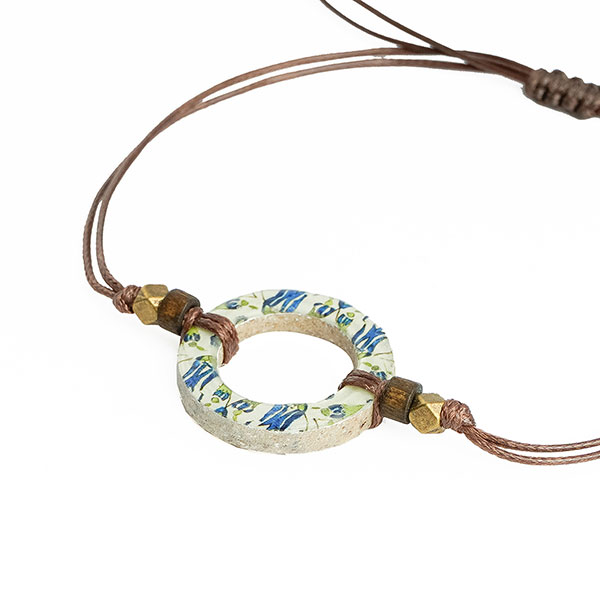 Material: Fliese aus Ton-Stein-Mischung, Messing (nickelfrei), Textilband gewachst, verstellbar über Schiebeknoten