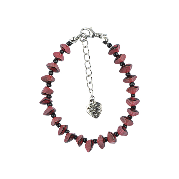 Elegantes Armband mit schwarzen Glasperlchen und Nuss Stückchen (Bits) der Buri-Palme. Shine Accessorize widmet sich der Herstellung von Schmuck aus Naturmaterialen wie Samen der philippinischen Buri-Palme. Diese blüht nur einmal gegen Ende ihres Lebens (nach etwa 70 Jahren) und bilden danach einen riesigen Fruchtstand (den größten der Welt), aus dem sie 10 tausende Samen abwirft. Die Samen werden zu Perlen.