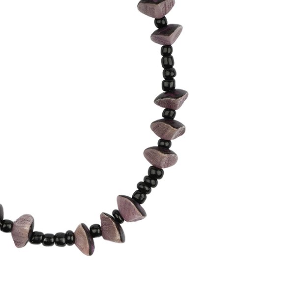 Elegantes Armband mit schwarzen Glasperlchen und Nuss Stückchen (Bits) der Buri-Palme.