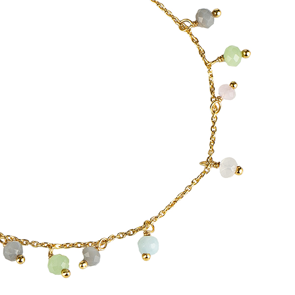 Wunderschönes Armband mit pastellfarbenen Calcit-Perlchen.Traditionelle Handwerkskunst gepaart mit modernem Design - hierfür steht unser Handelspartner Creative Designs. In der Schmuckwerkstatt in Jaipur, Indien entstehen elegante und einzigartige Schmuckstücke aus Messing mit zarter Vergoldung.
