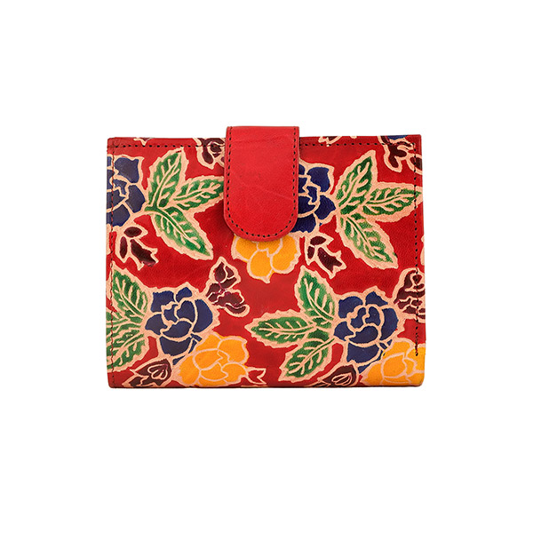 Die besondere Fertigung in traditioneller Shantiniketani-Technik macht diese Börse einzigartig. Das Leder wird geprägt und anschließend von erfahrenen Handwerkerinnen von Hand koloriert. Diese Technik wurde in den 1930er Jahren in Indien von Rabindranath Tagore (Schriftsteller und Nobelpreisträger) in Westbengalen eingeführt, um neue Einkommensmöglichkeiten im Handwerk zu schaffen.