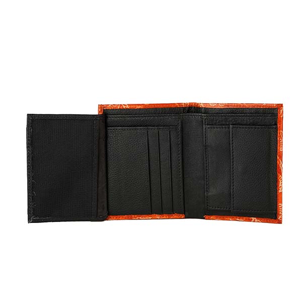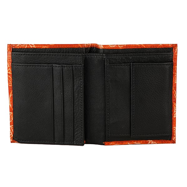 Großzügiges Münzfach mit Druckverschluss, 2 Scheinfächer, 1 Sichtfach im Ausweisformat, 6 Kartenschlitze und weitere Steckfächer