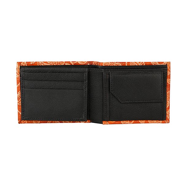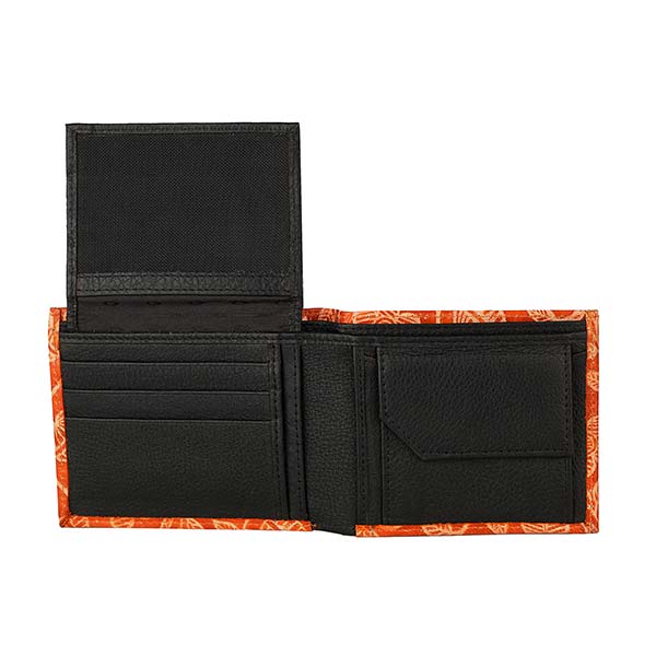 Innen: Zweigeteiltes Scheinabteil; Münzabteil mit Druckknopf verschlossen; 6 Kartenfächer, davon 2 mit Sichtfenster, 1 großes Sichtfenster z.B. für Fotos (NICHT für alte Personalausweise geeignet), 2 zusätzliche Steckfächer.