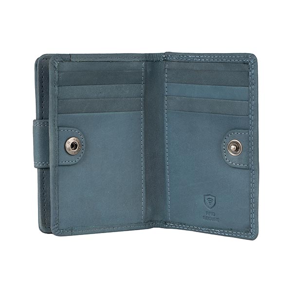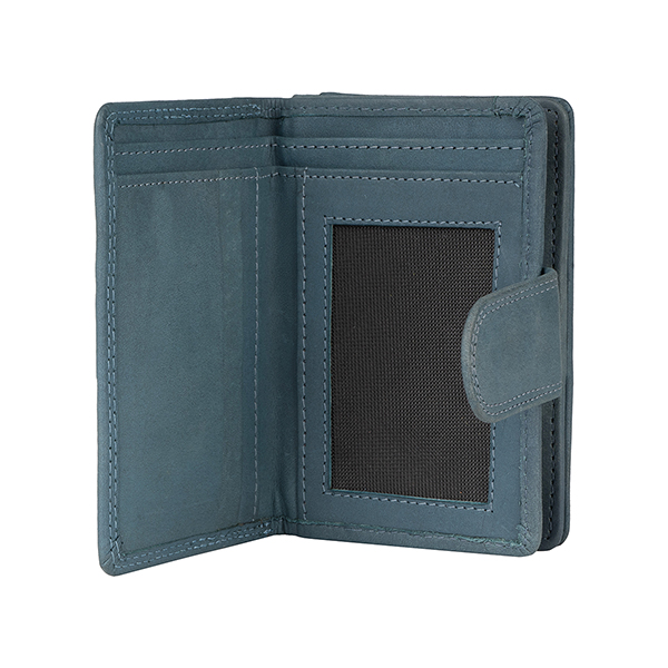 Innen vorn:  zwei Scheinfächer, 3 Kartenschlitze, 1 transparentes Sichtfach für Dokumente in Kreditkartengröße.