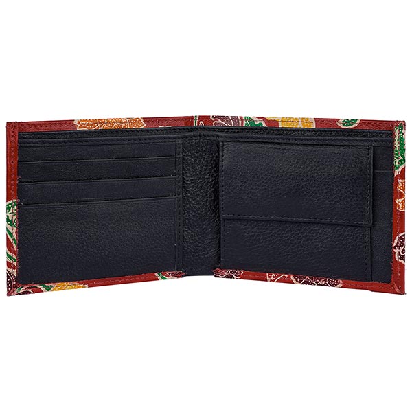 Innen: Die Börse im Querformat ist offen ohne zusätzlichen Verschluss. 2 Scheinfächern, Münzfach, 3 Kartenfächern, 2 Einschubfächer.