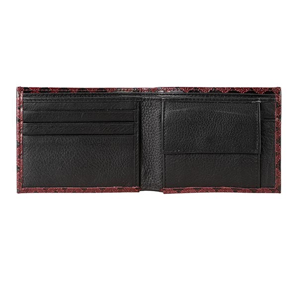 Innen: Die Börse im Querformat ist offen ohne zusätzlichen Verschluss. 2 Scheinfächern, Münzfach, 3 Kartenfächern, 2 Einschubfächer.