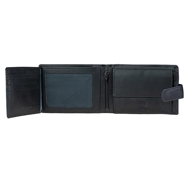 Dieses hochwertige Portemonnaie bietet reichlich Platz und zusätzlich optimale Sicherheit. Es ist mit einer RFID Schutzfolie ausgestattet, die das unkontrollierte Auslesen von Daten auf Kredit- oder Chipkarten verhindert. Eine Verschlusslasche mit Druckknopf hält die Kreditkarten sicher verwahrt.