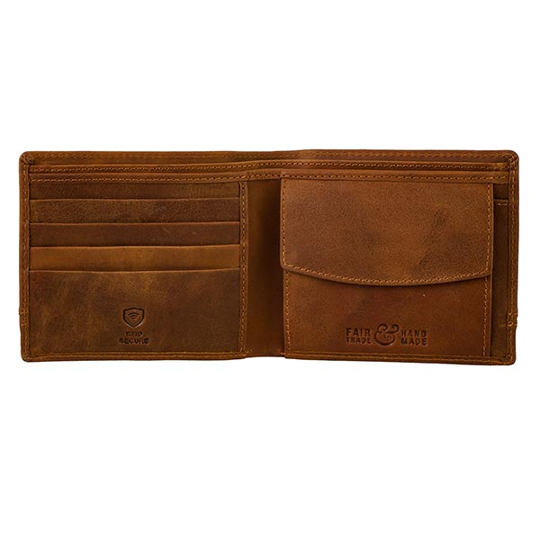 2 Schein- und 1 Münzfach sowie jeweils 4 Karten- und 2 Einsteckfächer. RFID-Schutz, Futter aus Polycotton.