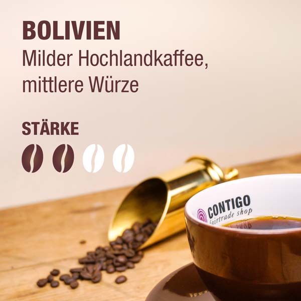 Charakter: Milder Hochlandkaffee, mittlere Würze, in Kombination mit Milch Noten von Milchschokolade