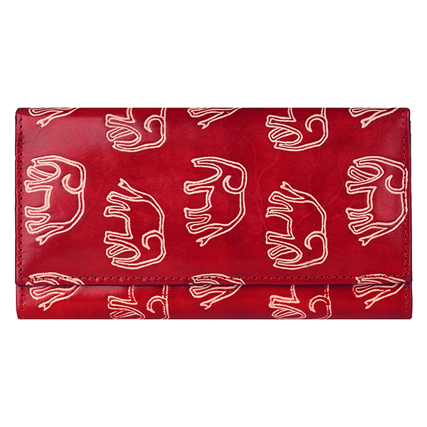 Das Besondere ist die Fertigung in traditioneller Shantiniketani-Technik. Das Leder wird geprägt und anschließend von erfahrenen Handwerkerinnen von Hand koloriert. Diese Technik wurde in den 1930er in Indien von Rabindranath Tagore (Schriftsteller und Nobelpreisträger) in Westbengalen eingeführt, um neue Einkommensmöglichkeiten im Handwerk zu schaffen.