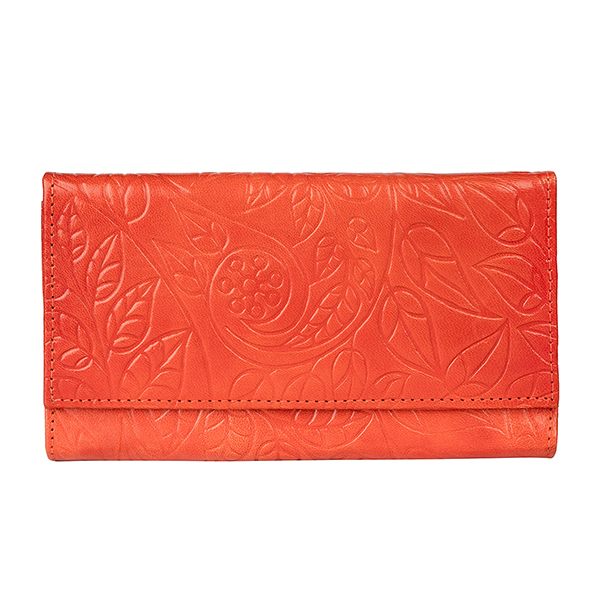 Das Besondere ist die Fertigung in traditioneller Shantiniketani-Technik. Das Leder wird geprägt und anschließend von erfahrenen Handwerkerinnen von Hand koloriert. Diese Technik wurde in den 1930er in Indien von Rabindranath Tagore (Schriftsteller und Nobelpreisträger) in Westbengalen eingeführt, um neue Einkommensmöglichkeiten im Handwerk zu schaffen.