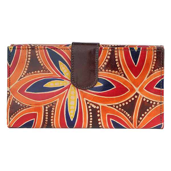 Das Besondere ist die Fertigung in traditioneller Shantiniketani-Technik. Das Leder wird geprägt und anschließend von erfahrenen Handwerkerinnen von Hand koloriert. Diese Technik wurde in den 1930er in Indien von Rabindranath Tagore (Schriftsteller und Nobelpreisträger) in Westbengalen eingeführt, um neue Einkommensmöglichkeiten im Handwerk zu schaffen.