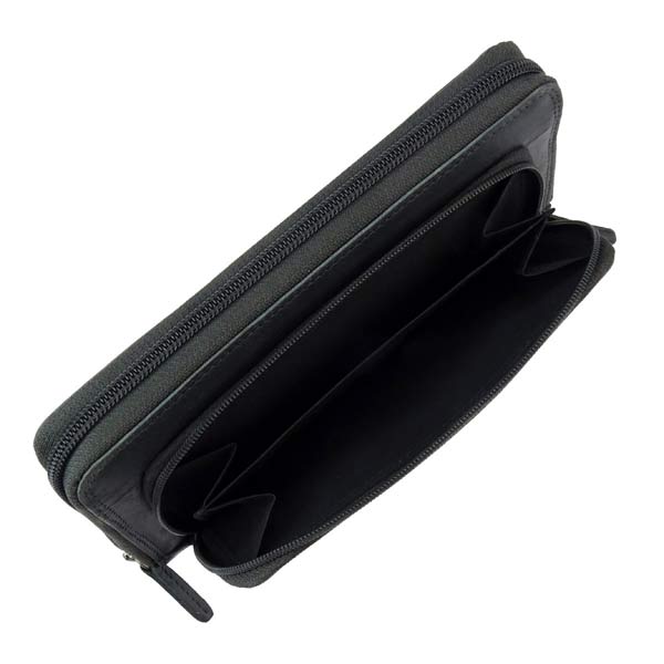 Eine Damenbörse mit reichlich Ausstattung. Maß 19x10x2cm. Geteiltes Geldfach außen angesetzt mit Reißverschluss. Hauptfach mit umlaufendem Reißverschluss sicher zu verschließen. Innenausstattung: leporelloartig auffaltbares Innenteil mit 4 separaten Fächern, 4 Kartenschlitzen, einem Reißverschlussmittelfach, 2 lange Schubfächer. Material: feines, offenporiges Rindsleder, Gerbung teilvegetabil, so bleibt der natürliche Look des Leders erhalten. Die Färbung changiert hell, dunkel, Schattierungen und Unregelmäßigkeiten im Naturleder sind kein Produktfehler. Pflege: Imprägnierspray verwenden.