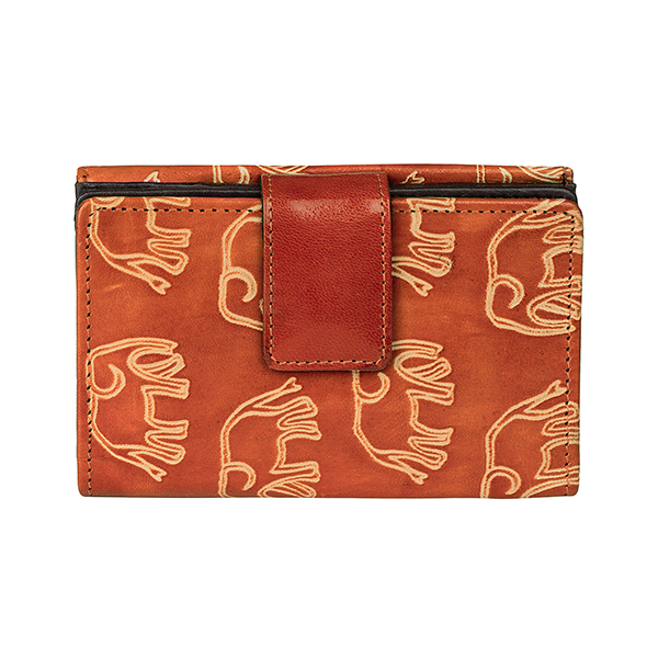 Das Besondere an dieser Börse ist ihre Fertigung in traditioneller Shantiniketan-Technik. Dabei wird das Leder geprägt und anschließend von erfahrenen Handwerkerinnen liebevoll von Hand koloriert. Diese Technik wurde in den 1930er Jahren von Rabindranath Tagore, einem angesehenen Schriftsteller und Nobelpreisträger, in Westbengalen, Indien eingeführt. Ziel war es, neue Einkommensmöglichkeiten im Handwerksbereich zu schaffen und gleichzeitig die Traditionen zu bewahren.