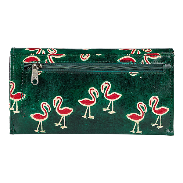 Das Besondere ist die Fertigung in traditioneller Shantiniketani-Technik. Das Leder wird geprägt und anschließend von erfahrenen Handwerkerinnen von Hand koloriert. Diese Technik wurde in den 1930er Jahren in Indien von Rabindranath Tagore (Schriftsteller und Nobelpreisträger) in Westbengalen eingeführt, um neue Einkommensmöglichkeiten im Handwerk zu schaffen.