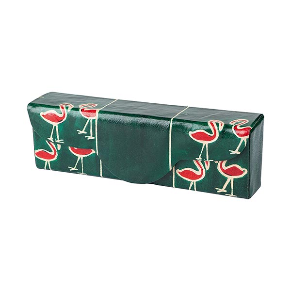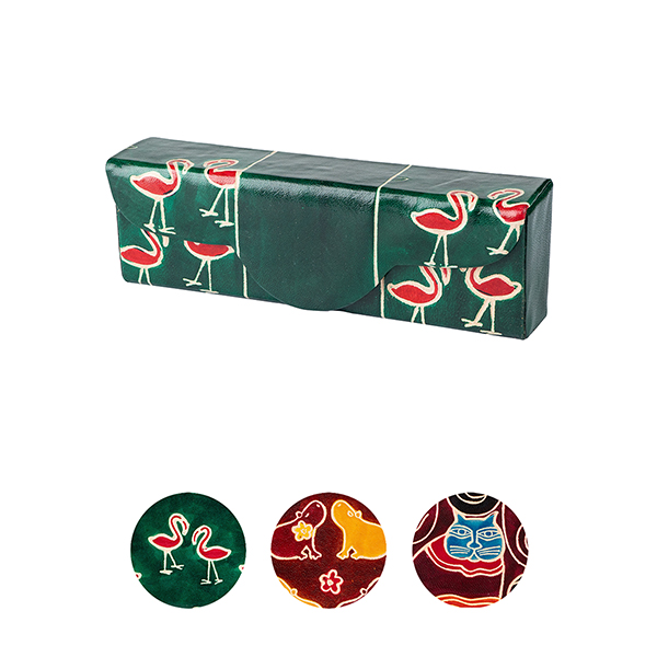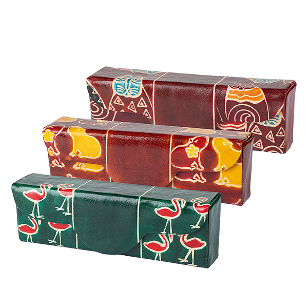 Von unserem langjährigen Partner Santir Silpa erhalten wir die kunstvoll geprägten und von Hand colorierten Accessoires. Das Ziegenleder wurde pflanzlich gegerbt. Die natürlich enthaltenen Öle werden durch Druck an die Oberfläche massiert und geben dem Leder Glanz und Schutz. Das traditionale Shantiniketani-Handwerk ist vom Aussterben bedroht und wird nur noch durch wenige kleine Betriebe fortgeführt. Finden Sie bei uns ihr farbenfrohes Lieblingsstück.