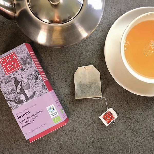 Die Bio-Jasminblüten für die Aromatisierung wachsen in der Südchinesischen Provinz Guangxi. Aromatisiert: Nein, sondern: Die klassischen Grüntee Fannings werden nach der Fertigstellung mit frischen Yasminblüten vermischt.