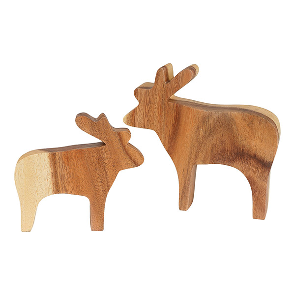 Niedliche Rentier-Dekofigur aus Acaciaholz, handgefertigt, perfekte Deko für den festlich gedeckten Weihnachtstisch oder die Fensterbank.