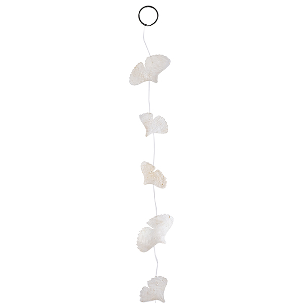 Diese zauberhafte Fenster-, Tür- oder Raumdekoration mit Ginkgo Blättern aus schimmernder Capizmuschel lässt Vorfreude auf sonnige Tage aufkommen. Der Strang besteht aus 18 Elementen und wird liebevoll auf den Philippinen von Hand gefertigt.