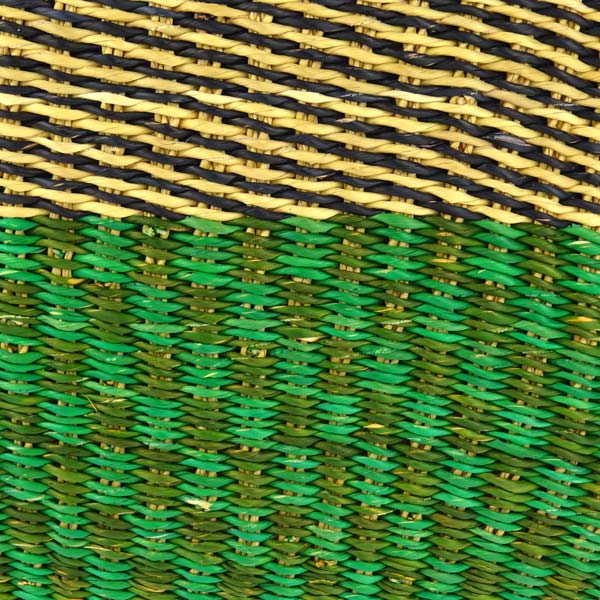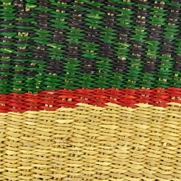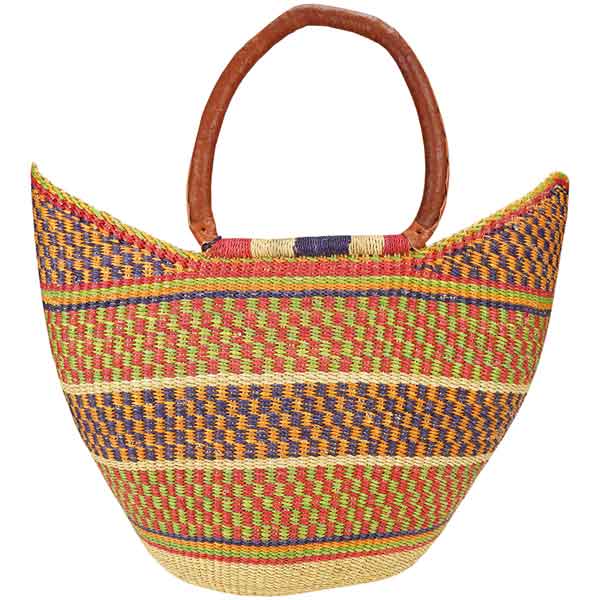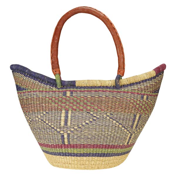 Formschöner Fair Trade Korb aus Ghana. Dieser robuste Einkaufskorb wurde von Flechterinnen im trockenen Norden des Landes von Hand geflochten. Die Region Bolgatanga gab diesem Korb den Namen, kurz: Bolga.