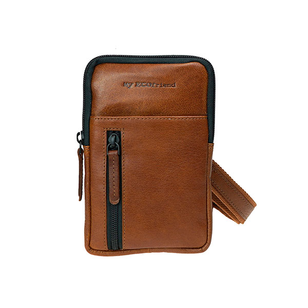 Eine schöne Handytasche aus robustem Naturleder mit abnehbarem Schultergurt und rückseitiger Schlaufe für das Tragen am Gürtel.