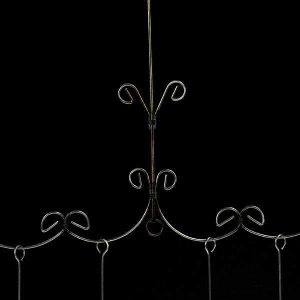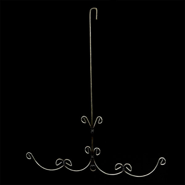 Kleines Display zur Präsentation der Glasdekorationen bestehend aus einer dekorativen Drahtaufhängung und 4 Haken verschiedener Länge. Zur Präsentation der Glasartikel, die Haken an das Display hängen. Nicht für schwere Kugeln geeignet, die gelöteten Verbindungen dürfen nicht zu schwer belastet werden.