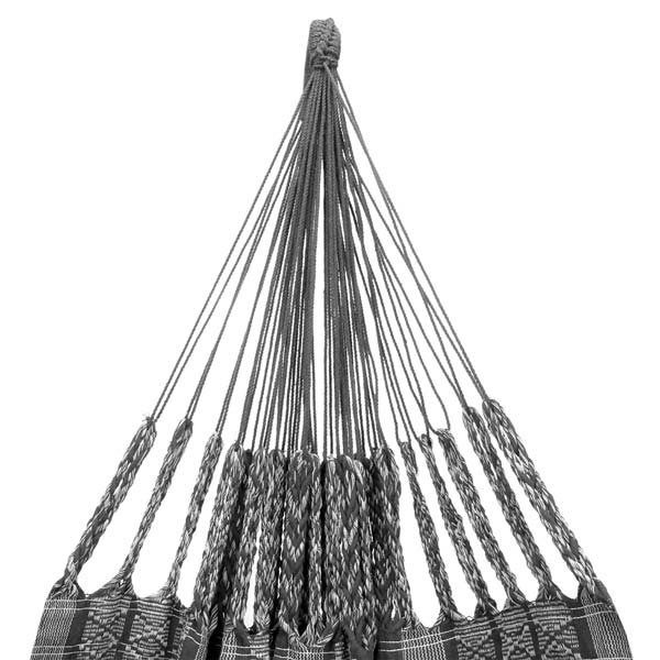 Hochwertige Hängematte aus Webstoff für zwei Personen. Aufwändiges Blockdesign, dicht gewebte Stoffqualität. Die von Hand gedrehten Zöpfchen „Cadejos“ sind ein besonderes Qualitätsmerkmal an kolumbianischen Hängemöbeln. Zusammen mit der Vielzahl an Aufhängeschnüren sorgen sie für eine optimale Gewichtsverteilung. Dadurch entsteht das besondere Gefühl der Schwerelosigkeit, das diese Hängematte zu Ihrem perfekten Wohlfühlort macht.