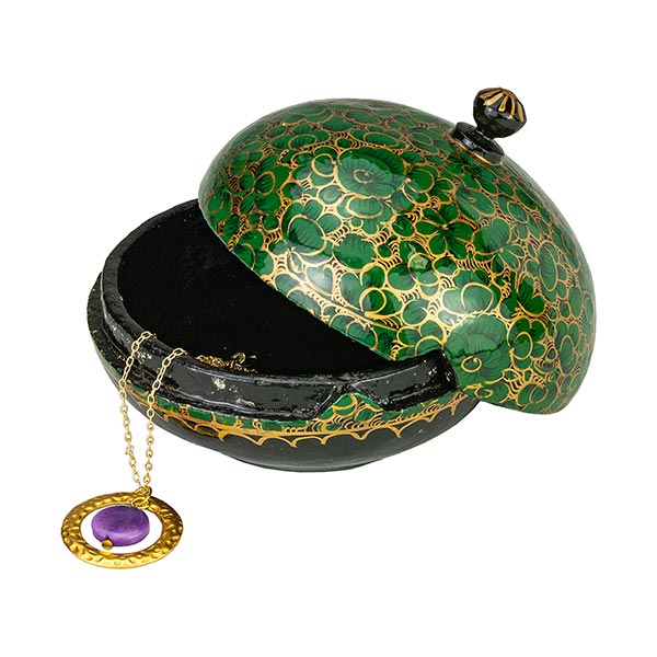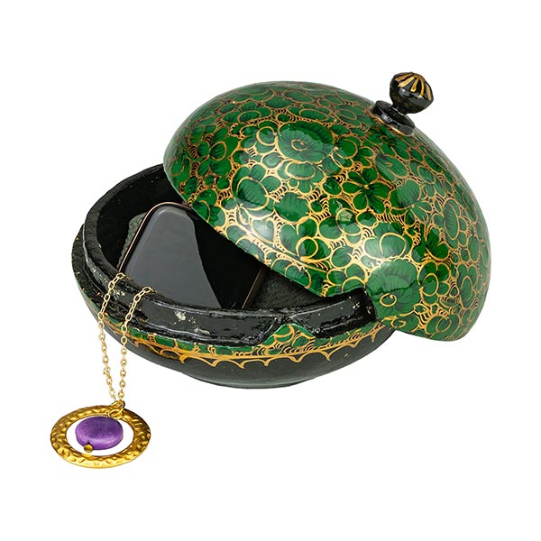BESONDERES: Die traditionelle Pappmaché-Herstellung und -Veredelung wird seit jeher von Generation zu Generation weitergegeben. Auch Jalaluddin erlernte diese Kunst von seinem Vater. Sein Familienbetrieb in der nordindischen Region Kaschmir stellt Produkte überwiegend für den Export her. Bei größeren Aufträgen kann er weitere Kunsthandwerker beschäftigen, die sich so ein Extraeinkommen erwirtschaften. Den Erhalt und die Förderung dieses Handwerks ist Jalaluddins Ziel, aber auch eine große Herausforderung. Während seine Sortimente aufwändig von Hand gefertigt und künstlerisch bemalt werden, gibt es immer mehr Großbetriebe, die durch den Einsatz von Maschinen den Markt mit günstiger, aber qualitativ minderwertiger Massenware sättigen. Die Belieferung des Fairen Handels ist somit umso wichtiger für den Erhalt der Arbeitsplätze.