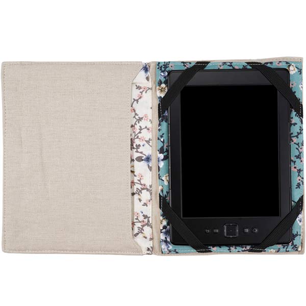 Innen: Zuggummihalterung für den Reader, Schubfach unter der Klappe.