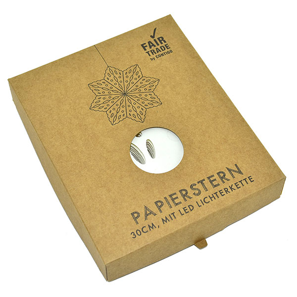 Extra: Der Faltstern wird in einem Verpackungskarton geliefert und kann so bis zum nächsten Einsatz sicher verstaut werden.