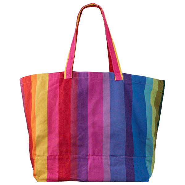 Sehr geräumige Strand- und Freizeittasche aus den bunten Stoffen unserer Hängemöbel. Robust, pflegeleicht und bereit für voluminöses Gepäck, der ideale Alltags- und Urlaubsbegleiter.