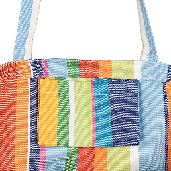 Beim Zuschnitt von Kissenhüllen und Freizeittaschen entstehen produktionsbedingt Varianten des abgebildeten Streifendesigns.