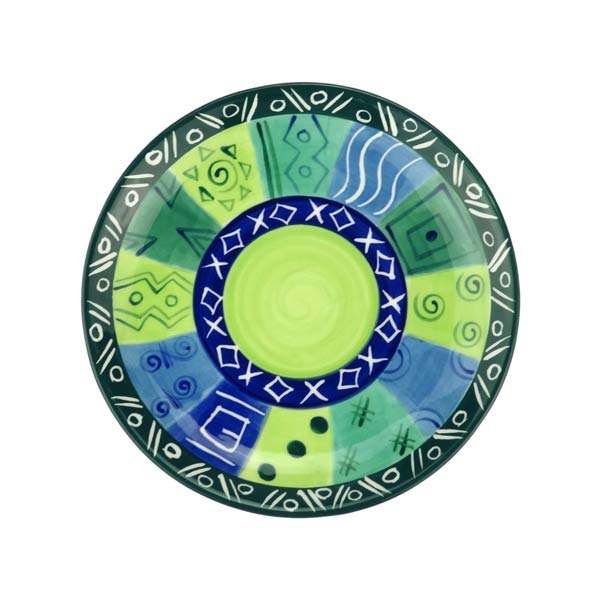 Von Hand gearbeiteter Frühstücks- oder Kuchenteller für Ihr Tafelservice. Flacher Teller von ca.19,5cm Durchmesser. Unterglasur Design: handbemalt mit afrikanisch inspirierten Motiven. Es gibt viele Varianten innerhalb einer Farbfamilie, gelieferter Artikel kann von der Abbildung abweichen.Material: hochwertiges Steinzeug aus weißem Ton, Glasurbrand bei 1.200°CEigenschaften: mikrowellengeeignet, für Lebensmittel geeignet.Empfehlung: handgemachte Keramik ist stoßempfindlicher als Industriekeramik. Die Standfläche der Keramik ist nicht glasiert. Wir empfehlen die schonende Reinigung durch Handabwasch.
