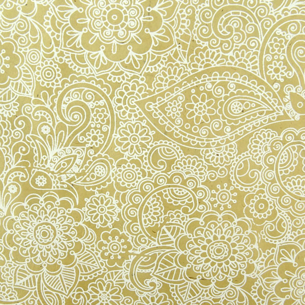 Handgeschöpftes Loktapapier, bedruckt, Maß ca. 50x75cm. Lokta ist die Rindenfaser des Seidelbastes und wird von Dorfgemeinschaften im Himalaya gewonnen. Die Ränder des Papieres sind durch die Technik des Handschöpfens nicht gerade geschnitten sondern unregelmäßig gewellt. Jeder Bogen wird als Rolle geliefert.
