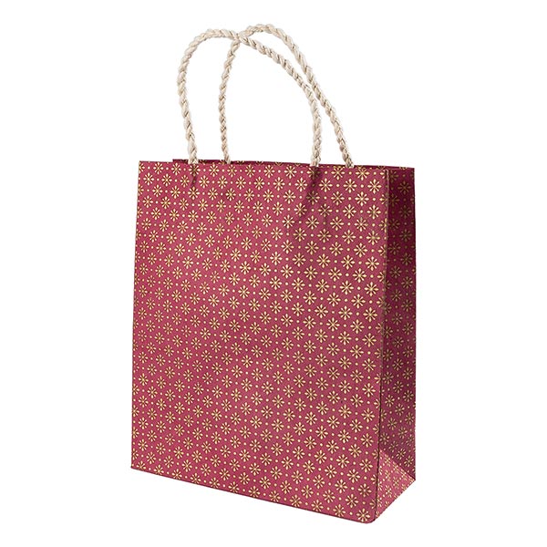 Auffallend schöne Tragetasche im weihnachtlichen Design, aus handgeschöpftem Loktapapier mit Tragegriffen aus Papierkordeln. Lokta, die Rindenfaser des Seidelbastes, wird im Himalaya von Dorfgemeinschaften geerntet und in kleinen Papiermanufakturen nach alter Tradition zu Papier verarbeitet. Loktapapier hat eine besonders weiche, stoffähnliche Haptik. Das Naturpapier kann mit verschiedensten Techniken gefärbt und gestaltet werden.