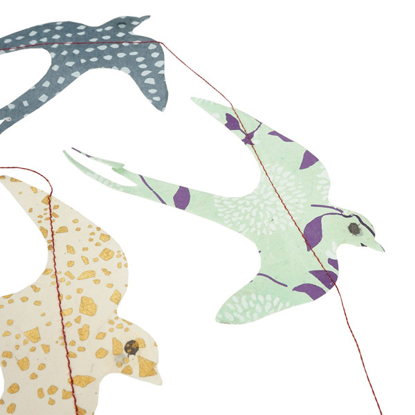 Die liebevoll von Hand gefertigten Girlanden aus Loktapapier verschönern jeden Raum und sind für viele verschiedene Anlasse geeignet. Die Farben und Designs sind immer nach dem aktuellen Sortiment zusammengestellt, jede Girlande variiert etwas von der Abbildung. Zur leichteren Aufhängung und Beschwerung sind an beiden Girlandenenden farbenfrohe Filzkugeln befestigt. Horrizontale Girlanden machen sich sehr als Fenster-, Raum- oder Wandschmuck. Die vertikalen Girlanden geben jedem Türrahmen, jeder Stehlampe und jederm Regal einen ganz besonderen und farbenfrohen Rahmen.