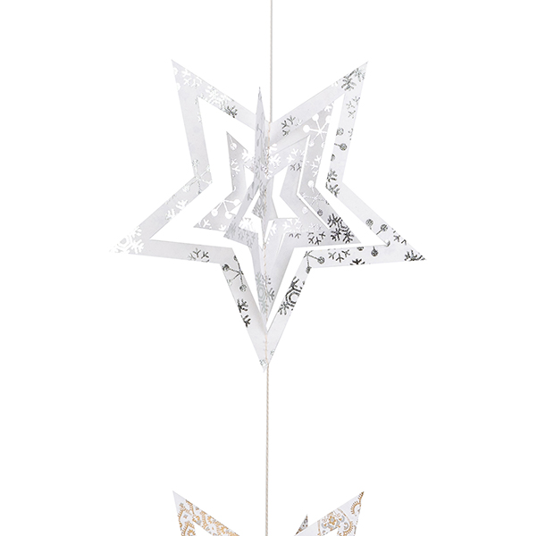 Festliche Raumdeko, die durch einen Luftzug zum Leben erwacht. Die Sterne sind dreidimensional aufklappbar und hängen am schönsten von der Decke in den Raum.