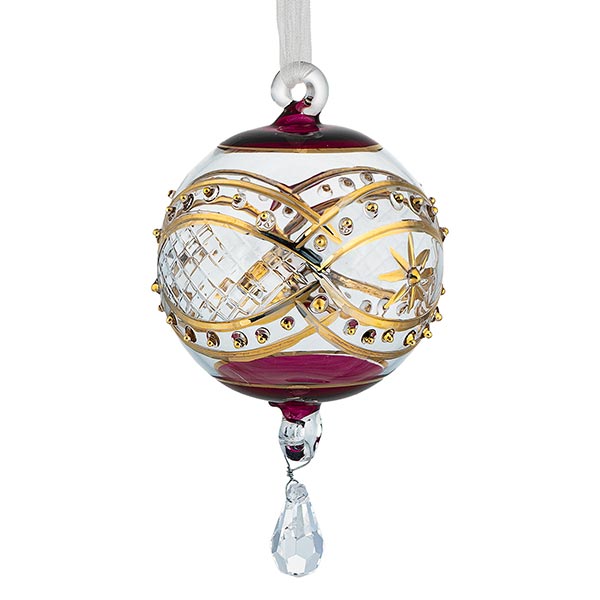 Farbe: klar und beere mit goldfarbenen Akzenten. Goldbemalung mit 14 Karat Gold.