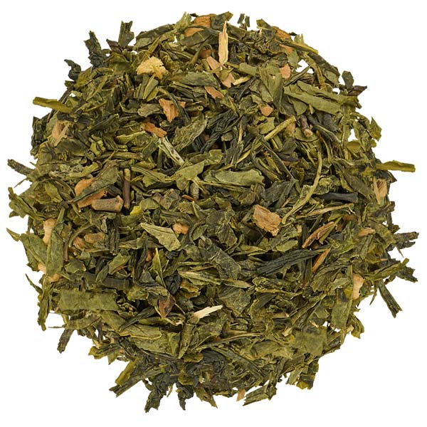 ZUTATEN Sencha* grüner Grundtee und gewürze: Zimtstückchen*, Kardamom*, Pfeffer*, Ingwer*