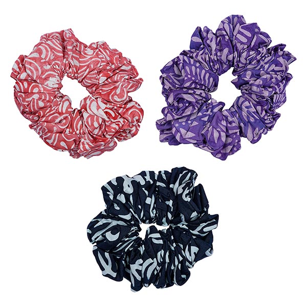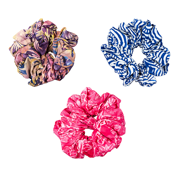 Indonesien bei Arum Dalu Mekar per Hand hergestellt. Die Baumwolle wird in traditioneller Technik per Hand bemalt, somit ist jedes Scrunchie ein Einzelstück. Sie bestechen durch die Modellvielfalt, nachhaltige Materialien und sind eine wichtige Lebensgrundlage für Familien im Umland von Jogjakarta.
