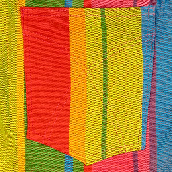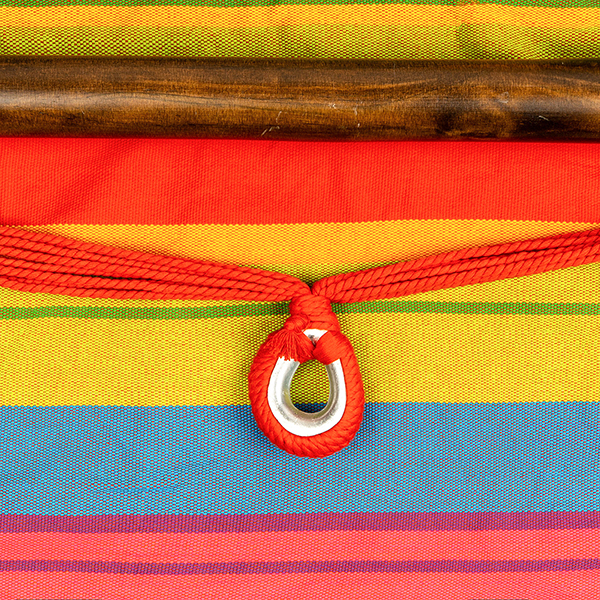 BESONDERES: Exporsal hat einen enormen Einzugskreis. Viele ländliche Arbeitsplätze wurden geschaffen. Die traditionelle Webkunst lebt weiter und wird gefördert. Die farbenfrohen und gut gearbeiteten Hängematten und –sitze haben sich in Europa längst einen Namen gemacht und sind stabiler Bestandteil von CONTIGOs Sortiment. Trotz der zunehmenden Verlagerung der Weberei auf Machinenwebstühle bleiben viele Herstellungsschritte in den Händen kleiner Handwerksbetriebe, das Knüpfen der Aufhängungen, die Näharbeiten, das Zusammenfügen aller Teile zum fertigen Produkt. Trotz der schwierigen Sicherheitslage in El Salvador gelingt es Exporsal, für ihre Handwerker eine sichere Lebensgrundlage zu schaffen.