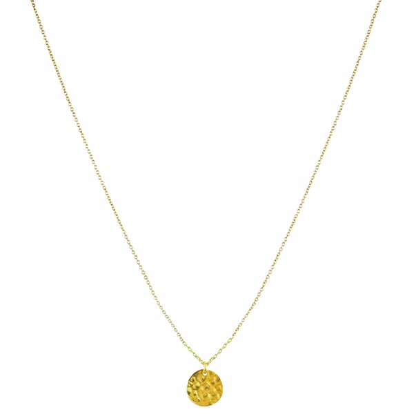 Diese feine Kette mit einem dezent gehämmerten Plättchen besticht durch ihr zeitloses Design. Gefertigt aus Messing und mit 22 Karat vergoldet, verleiht sie jedem Outfit einen edlen Akzent. Ob solo getragen oder als Teil eines Layering-Looks – sie passt sich jedem Stil mühelos an. Traditionelle Handwerkskunst gepaart mit modernem Design - hierfür steht unser Handelspartner Creative Designs