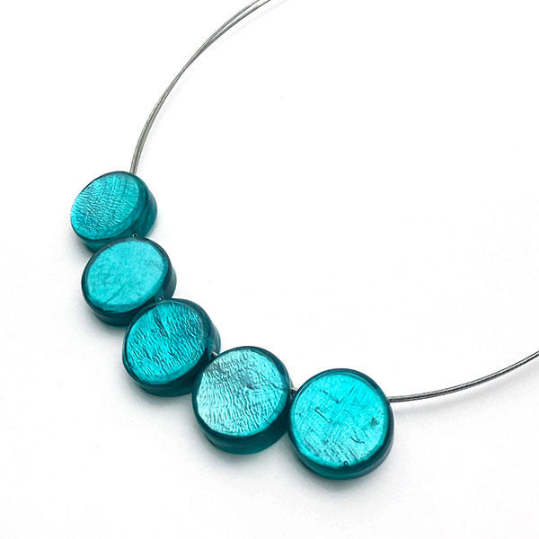 Ein Sommertraum in Blau: Diese Halskette wird aus den Schalen der Capizmuschel hergestellt. Das äußerst robuste Muschelmaterial verbunden mit dem lichtdurchlässigen Kunstharz, ist in seiner Wirkung dem Schimmern der Muscheln im Meer nachempfunden. Sie wachsen in den seichten Küstengewässern rund um die philippinischen Inseln. Unser langjähriger Handelspartner SHINE verwendet ausschließlich die Schalen bereits abgestorbener Muscheln, die am Strand der Insel Cebu eingesammelt werden.